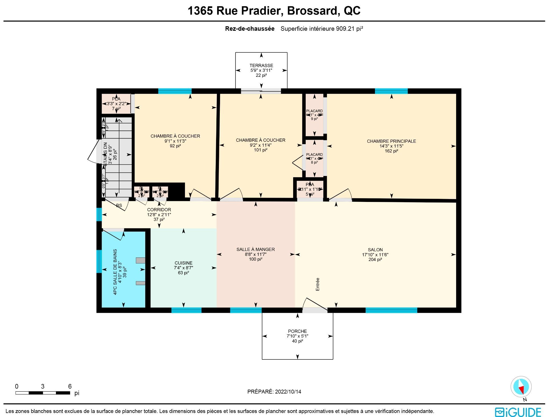| Chambre à coucher principale | 14.3 x 11.4 P | Rez-de-chaussée | Plancher flottant |
